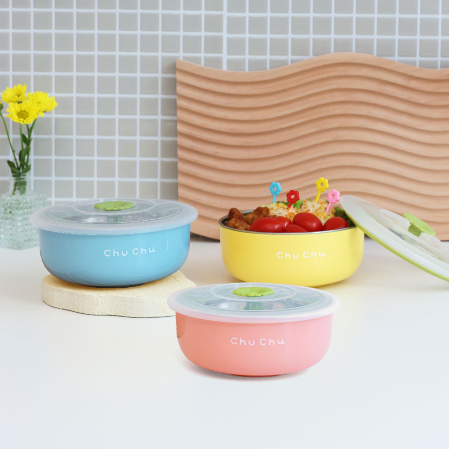 【ChuChu初初】不鏽鋼雙層隔熱三色碗400ML-泡泡粉